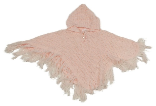 Ružové svetrové pončo s strapcemi a kapucňou Babytown