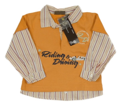 Nové - oranžová tepláková vesta s formulou a nápismi a pruhovanou košilí