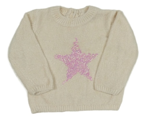 Smotanový žinylkový sveter s hvězdou z flitrů in extenso