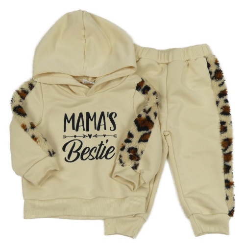 2set - Béžová mikina s nápisom a kapucí + tepláky