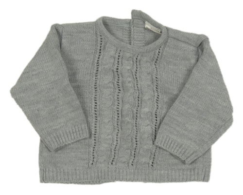 Sivý melírovaný sveter s copánkovým vzorom