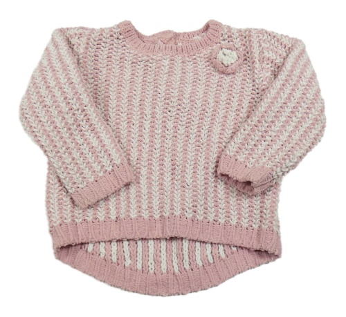 Ružovo-biely melírovaný sveter s kvetinou