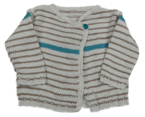 Bielo-hnedo-modrozelený pruhovaný pletený prepínaci sveter