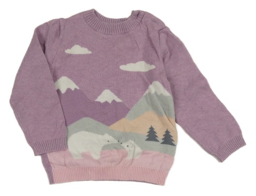 Lila sveter s horami a mraky Tu