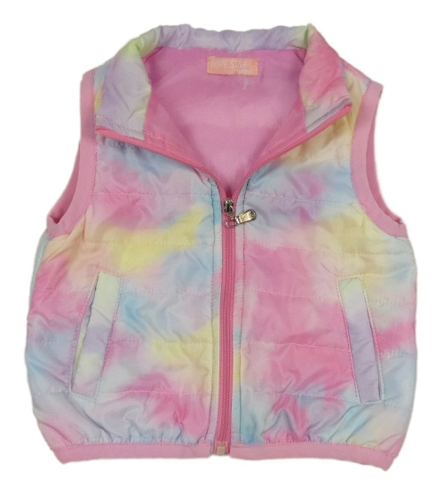 Ružovo-farebná vzorovaná šušťáková lehce zateplená vesta