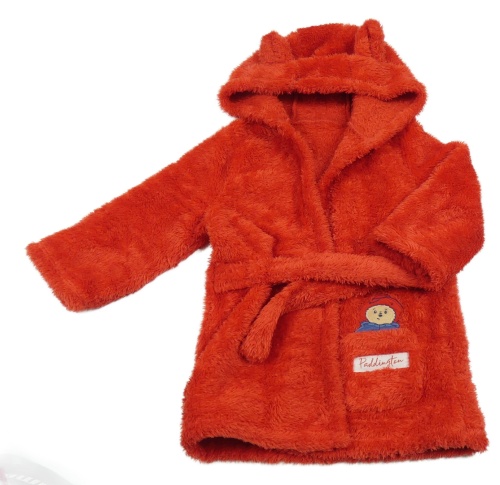 Červený chlpatý župan s Paddingtonem a kapucňou