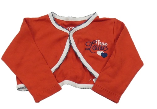 Červené bavlnené bolerko s nápisom a srdiečkami