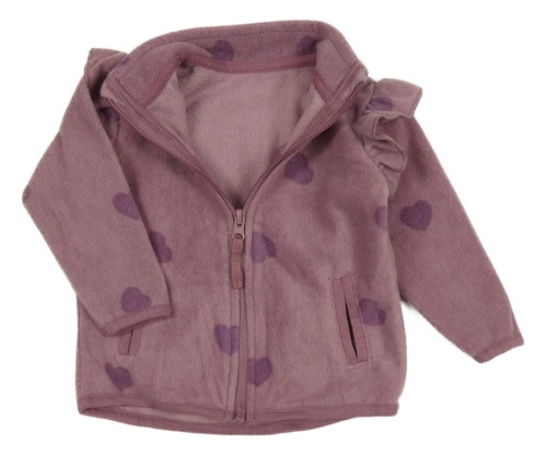 Staroružová fleecová prepínaci mikina so srdiečkami a volánikmi Dunnes