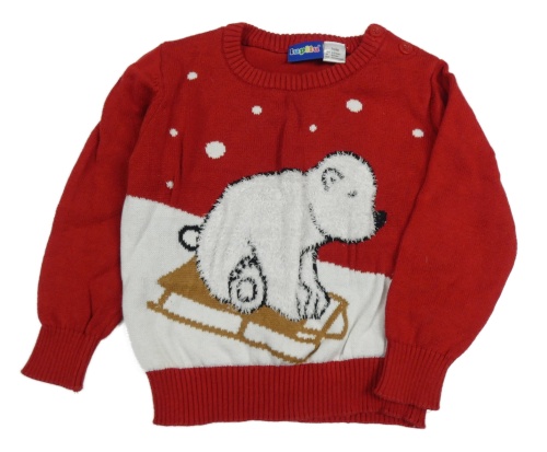 Červeno-biely sveter s medvěďom Lupilu