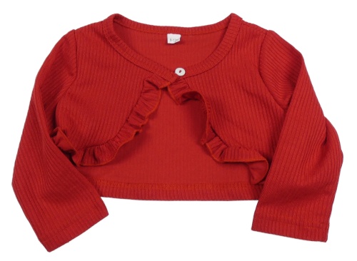 Červené žebrované propínací bolérko s volánikmi
