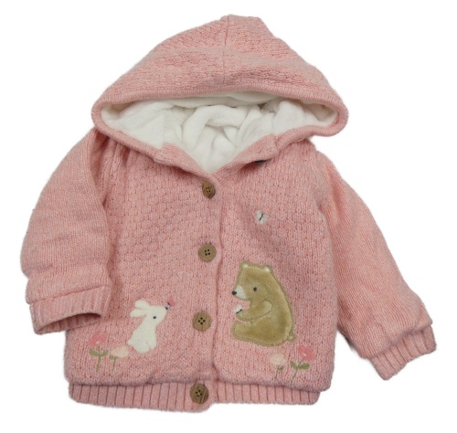 Ružový melírovaný prepínaci zateplen sveter s medvedíkom a kapucňou Nutmeg