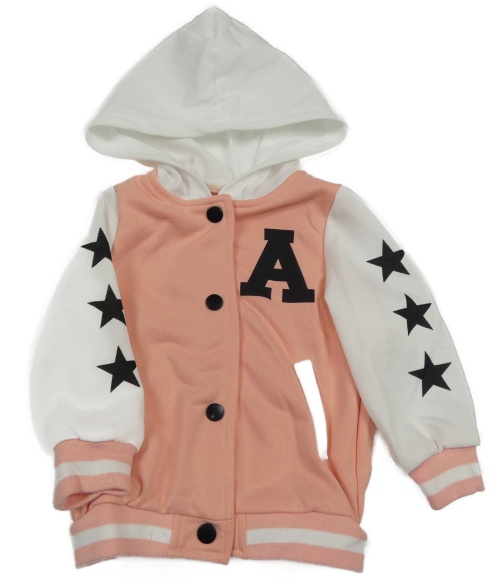 Broskvovo-biela baseballová mikina s písmenkom a hviezdičkami a kapucňou