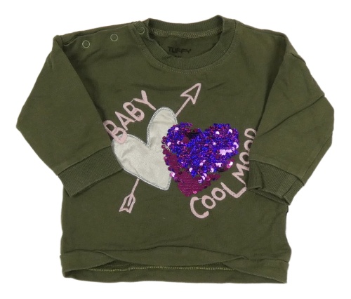 Khaki mikina so srdiečkami s překlápěcími flitre
