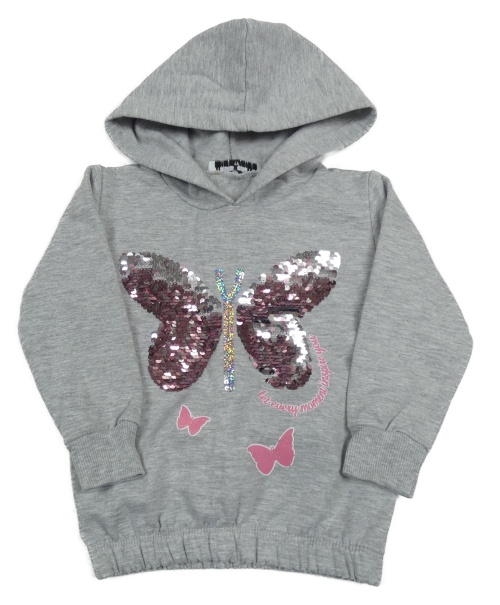 Sivá melírovaná mikina s motýly z flitrů a kapucňou Miss Ebito