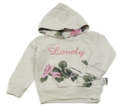 Biela ľahká mikina s lístky a nápisom a kapucňou