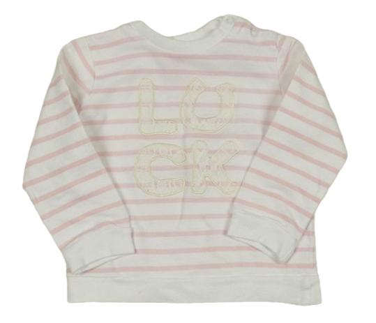 Bielo-ružová pruhovaná mikina s čipkovým nápisom