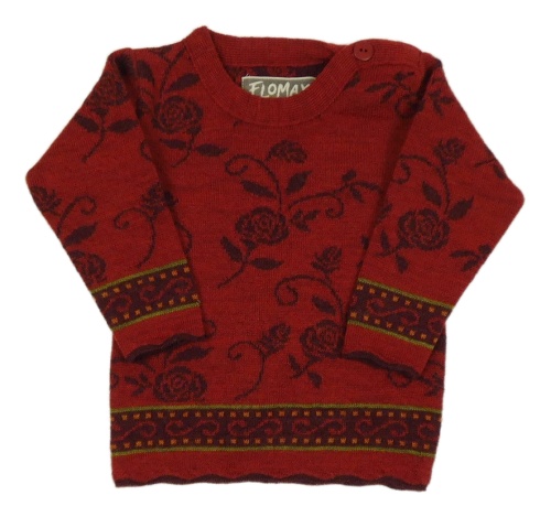 Rubínový vlnený sveter s růžemi