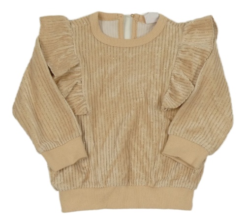 Béžovo-strieborná rebrovaná zamatová mikina s volánikmi hema