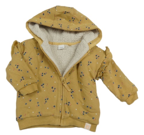 Okrová bodkovaná á prepínaci zateplená mikina s kvietkami a volánikmi a kapucňou Next