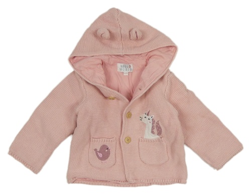 Svetloružový prepínaci podšitý sveter s jednorožcom a kapucňou