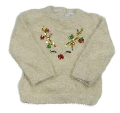 Smotanový trblietavý chlpatý sveter so sobom Topomini