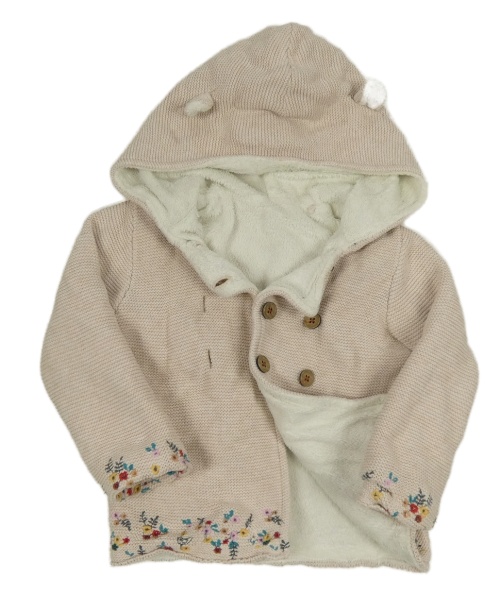 Světlerůžový zateplený pletený svetrový kabátek s kvetmi a kapucňou Tu