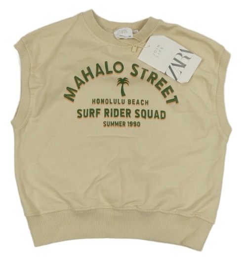 Nová - béžová tepláková oversize vesta s nápismi a palmou ZARA