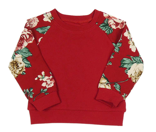 Červená vzorovaná mikina s kvetovanymi rukávy SHEIN