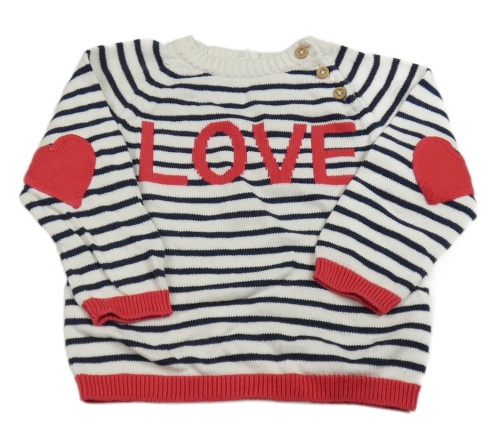 Bielo-čierny pruhovaný sveter s nápisom H&M