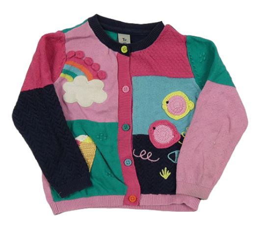 Ružovo-zeleno-tmavomodrý prepínaci sveter s dúhou a zmrzlinkou a rybičkami Tu