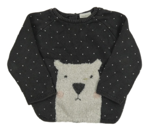 Tmavosivý vzorovaný vlnený sveter s medvedíkom Next