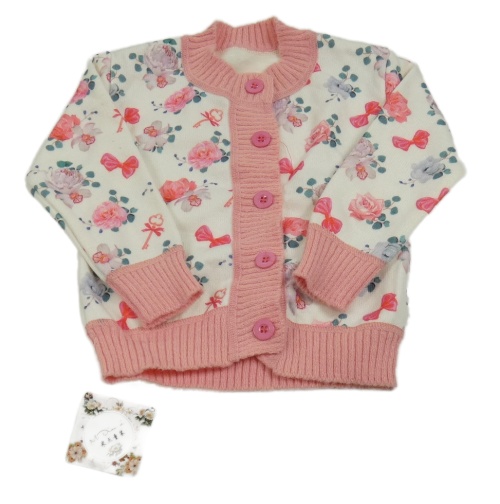 -Nové Bielo-ružová prepínaci pletená mikina s kvietkami