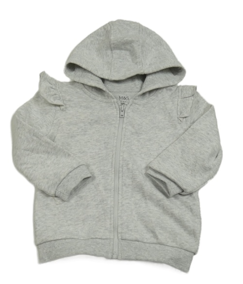 Bielo-sivá melírovaná prepínaci mikina s volánikom a kapucňou M&S