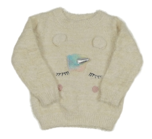Bielo-zlatý trblietavý chlpatý sveter s čumákem - jednorožec Nutmeg