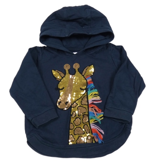Tmavomodrá mikina so žirafou z flitrů a kapucňou