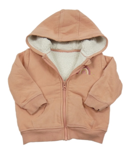Světlerůžová zateplená propínací mikia s dúhou a kapucňou George