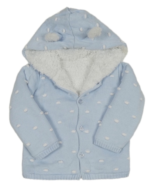 Svetlomodrý zateplený prepínaci sveter s 3D bodky a kapucňou Matalan