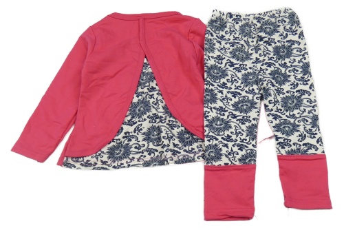 Nové - 2Set - Malinová tunika so zajíčkem + bílo/tmavomodro/malinové vzorované legíny