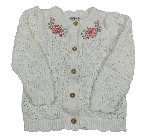 Biely perforovaný prepínaci sveter s výšivkami květů