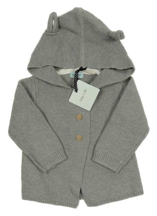 Nové - Sivý melírovaný prepínaci sveter s kapucňou s uškami Lilly+Sid