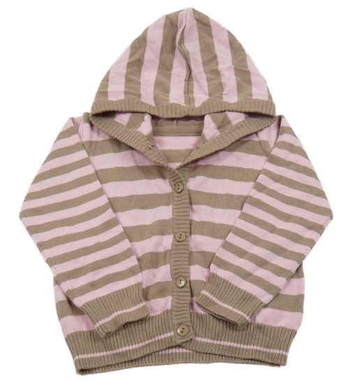 Svetloružová -hnedý pruhovaný prepínaci sveter s kapucňou