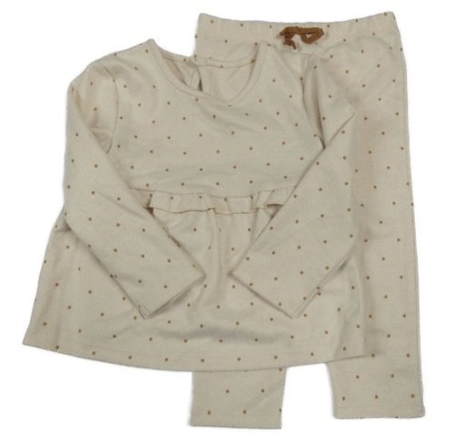 2Set - Béžovo-smotanová vzorovaná bodkovaná á úpletová tunika + nohavice Tu