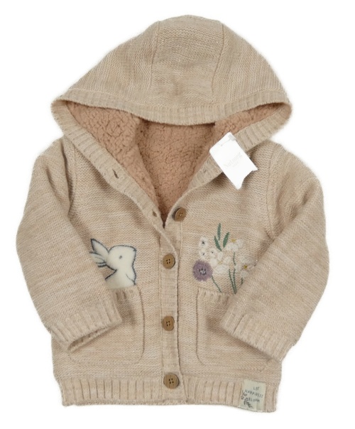 Nové - svetloružový trblietavý zateplený prepínaci sveter s králikom a kapucňou Nutmeg