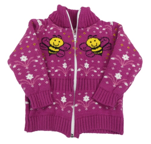 Fuchsiový vzorovaný prepínaci sveter s včelami