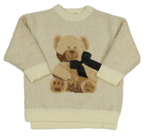Béžový trblietavý sveter s medvedíkom a mašlou River Island
