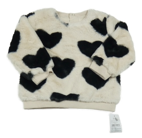 Nové - Béžovo-čierna srdiečkovaná chlpatá mikina Nutmeg