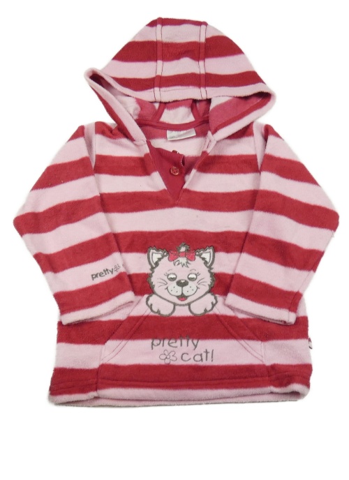 Vínovo-svetloružová pruhovaná fleecová mikina s mačičkou a vreckom a kapucňou