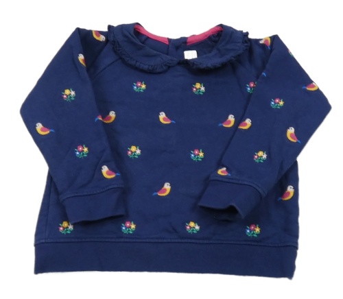 Tmavomodrá podšitá mikina s vtáčky a kvietkami a golierikom Jojo Maman Bébé