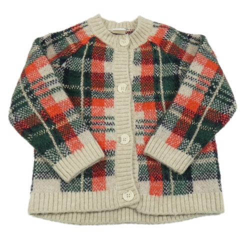 Světlebéžovo-červeno-smaragdovo-tmavomodro-zlatý kockovaný vlnený prepínaci sveter H&M