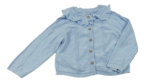 Svetlomodrý prepínaci sveter s perforovaným vzorom a golierikom Tu